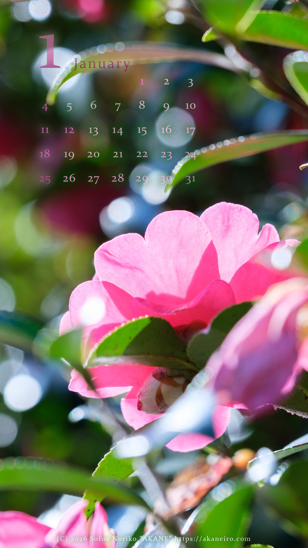 1月のカレンダーはサザンカです。上のカレンダーを壁紙としてお使いいただけます。(個人使用のみ可)
